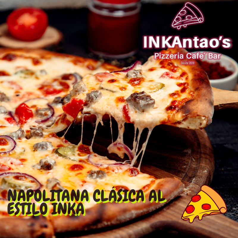 Inspirada en la receta clásica de Nápoles y horneada al estilo INKAntao’s, nuestra Pizza Napolitana es una oda a la simplicidad y al sabor auténtico. Preparada con salsa de tomate natural, mozzarella fresca, albahaca recién cortada y un toque de aceite de oliva virgen sobre masa artesanal, fermentada en casa y cocida a la leña.